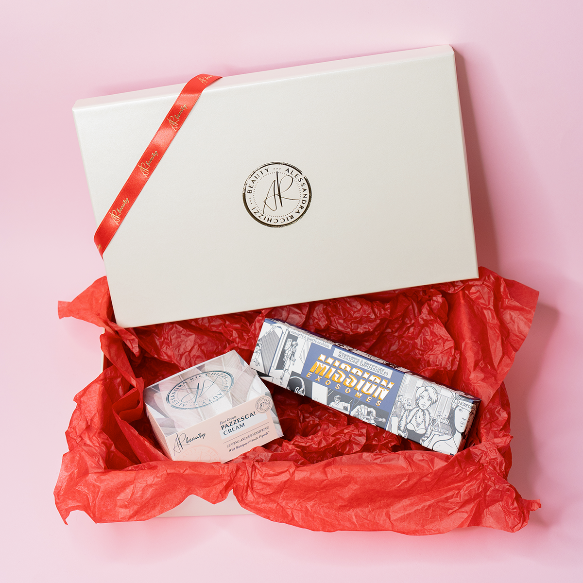 Begin this intensive anti-aging protocol with CREMA PAZZESCA, whose densifying and lifting action, combined with the effectiveness of hyaluronic acids of different molecular weights and other functional active ingredients, will help redefine the facial contour and give your skin a visibly younger appearance after just 14 days of use.
